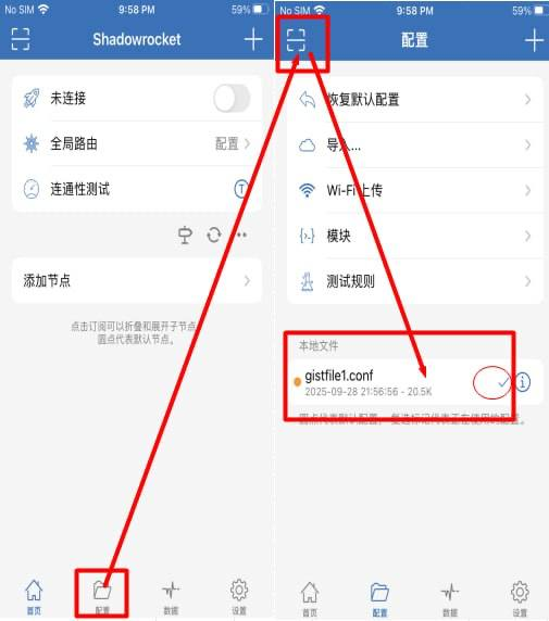 第一步:点击配置扫描下方配置二维码!选择配置文件-配置规则.只需要扫一下点击文件一下