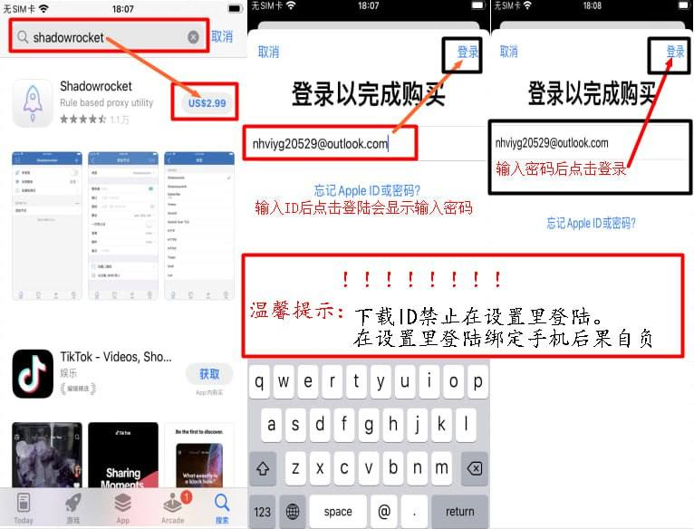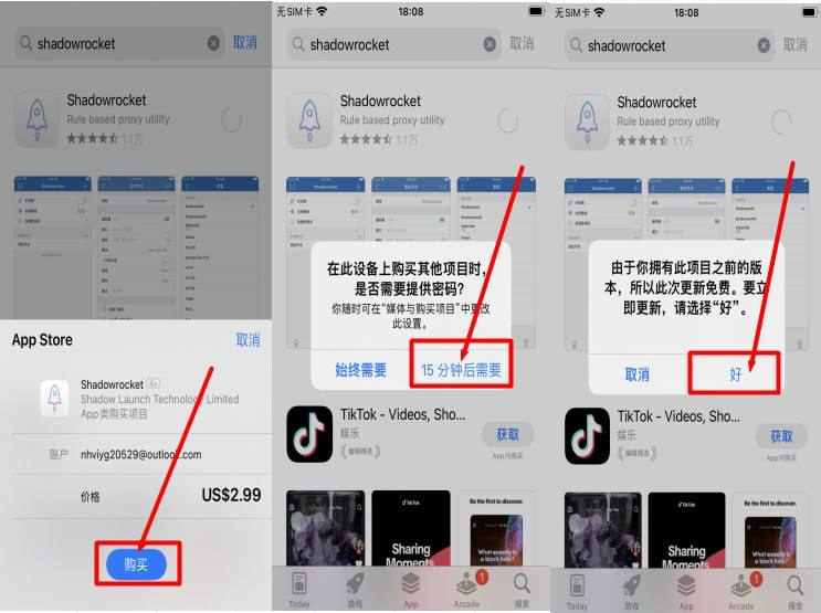 第二步:搜索shadowrocket 点击购买下载,登录团队ID(重要提示:千万不要在设置里登陆美区ID,否则会绑定手机)